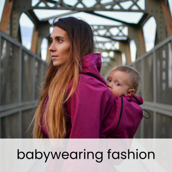 Practical babywearing coats and softshell jackets with inserts for ergonomic carriers. Keep both parent and baby warm and dry in any weather.